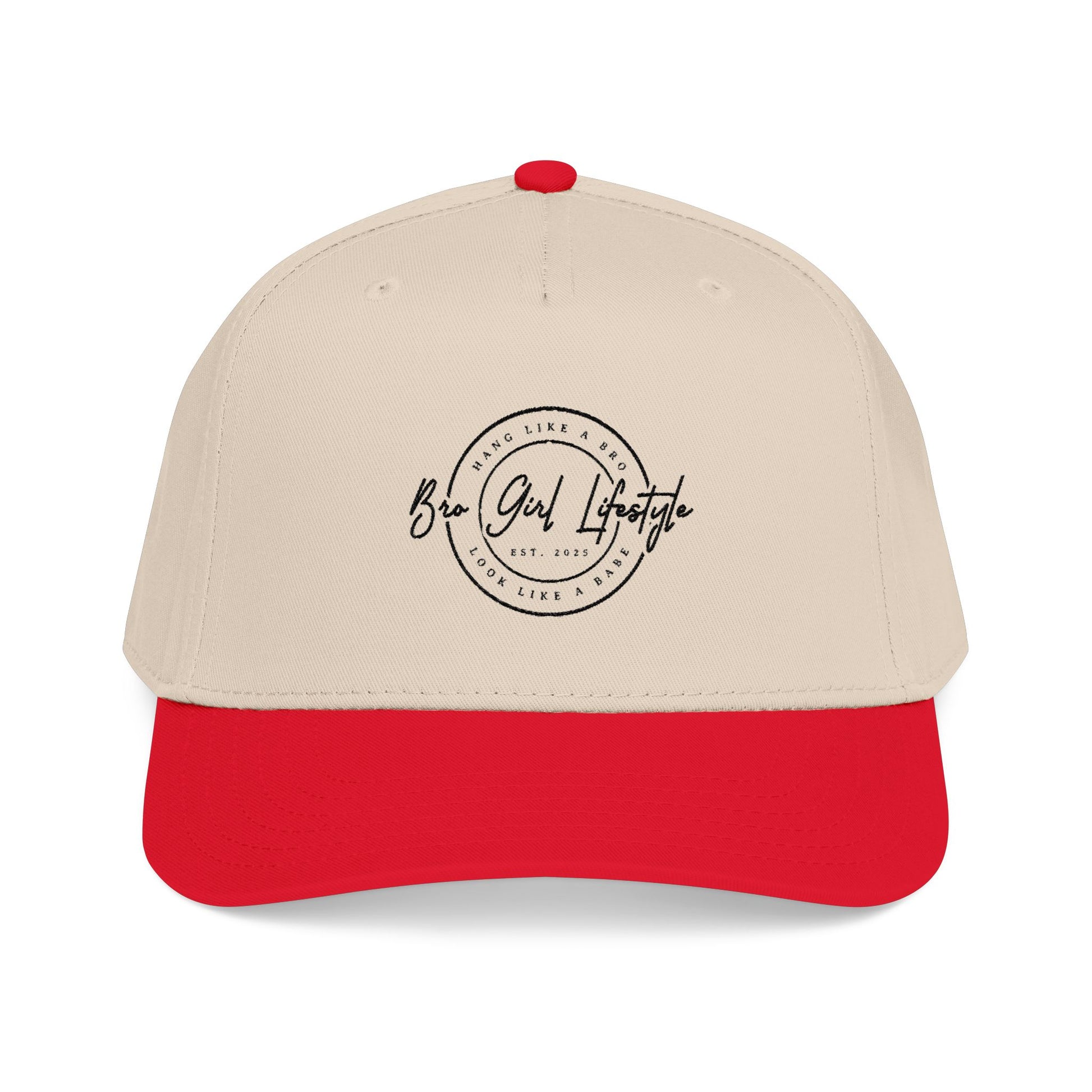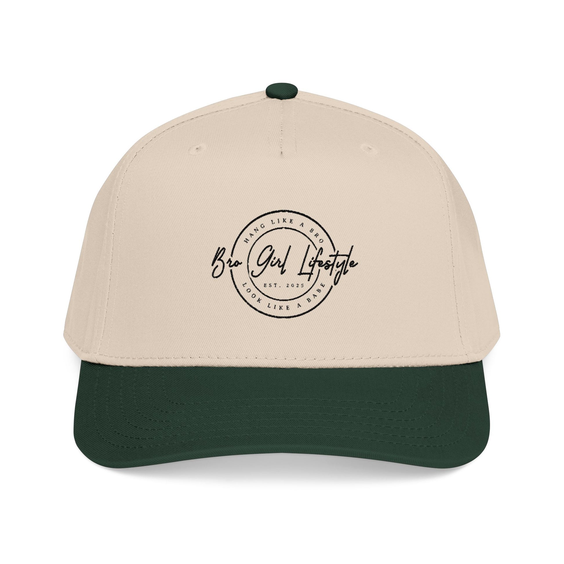 - Structured 5-panel, mid-profile shape with a seamless front panel